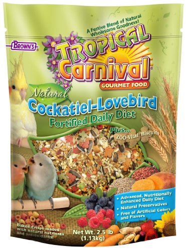 Tropical Carnival Natural Cockatiel-Lovebird; is a vitamin-nutrient-fortified food & treat in one. This premium gourmet food is specially formulated for the daily dietary needs of cockatiels & lovebirds, jam-packed with a medley of delicacies.