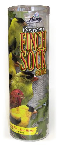 Heath Outdoor Products 13-ounce Filled Thistle Sock #FILTS25. Finches prefer mesh socks over traditional tube feeders. Abundant area to perch when ever they want to. Fun and easy to use. Instant ready to use just unwrap and hang.