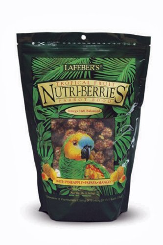 Lafeber' s Tropical Fruit Nutri-Berries Parrot Food with Pineapple Papaya and Mango are colorful, richly textured and invitingly shaped treats which have the difference your birds can see, taste and touch. Your bird will thrive on the stimulation and beak exercise Lafeber' s Nutri-Berries provide. Lafeber' s Tropical Fruit Nutri-Berries Parrot Food with Pineapple Papaya and Mango contain only nutritious natural ingredients like cracked corn, peanuts and safflower blended with papaya, banana and