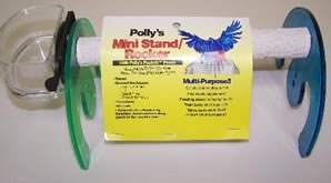 With neon acrylic legs. For Cockatiels and Conures. Portable. Multi-purpose: creates a new play area; fits inside aquarium; feeding stand for baby birds; train baby bird to perch. Size: 1" dia. x 6" long.