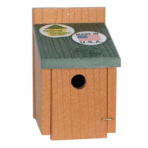 This wren houses are made from over 90 percent post-consumer recycled plastic. They are designed for easy maintenance and large feed capacities. The world is going green. Help conserve the environment - choose recycled products. Recycled plastic doesn�t absorb water, so it won�t harbor mold or bacteriathat ensures a healthier environment for birds. 1-Inch entry hole is ideal for wrens. Measures 5-1/2-inch by 5-3/4-inch by 8-inch high.