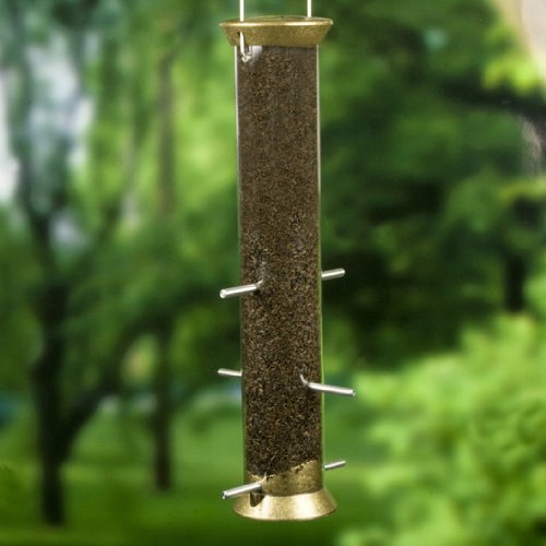 - Tube feeder holds thistle seed