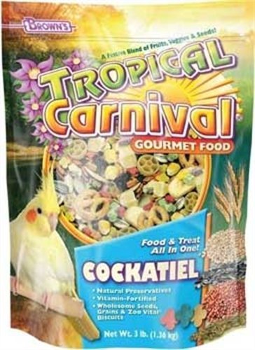 Tropical Carnival is a natural, vitamin-nutrient-fortified daily diet. It's a food and treat, all-in-one. Our super premium gourmet food is specifically formulated to help Cockatiels, Lovebirds and Conures thrive. We've jam-packed it with a mix of fruits, nuts, vegetables and wholesome seeds and grains. Tropical Carnival includes natural preservatives to ensure freshness. Omega Fatty Acids, antioxidants and beneficial bacteria help support good digestion. Your Cockatiels, Lovebirds and Conures w