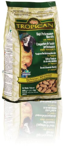 Tropican High Performance Biscuits for Parrots is scientifically formulated as completely balanced, extruded biscuits, which contain eight grains and nuts for maximum palatability and biological value. Vitamin and mineral supplementation is not required. Tropican High Performance Biscuits for Parrots is an optimal diet for the growth and maintenance of all large birds and an excellent supplement food for large parrots that are on a seed-based diet. Tropican Parrot Biscuits Product Description
