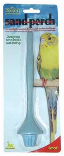 The Sand Perch from Insight by JW is designed specifically to help keep mess inside the cage. This perch is wider at the base and then gradually gets more slender as it extends into the cage. This keeps the bird perched on the middle to end rather than right near the side of the cage. The natural sand is part of the mold, not sprayed on and so is durable and comfortable for your bird. Suitable for parakeets and cockatiels and other similar sized birds.