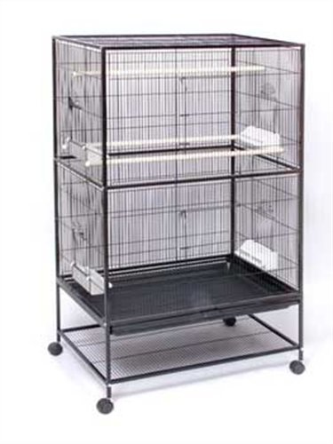 Prevue Pet Products Wrought Iron Flight Cage with Stand F040 Black Bird Cage makes the perfect home for multiple parakeets, canaries or finches. Featuring two large front doors and a bottom shelf for additional storage space, this flight cage stands on rolling casters and is easily moved from room to room. Four plastic double cups and three wood perches are included in this economical extra large cage. Our wrought iron Flight Cage with Stand is 31-inch long, 20-1/2-inch wide and 53-inch high wit