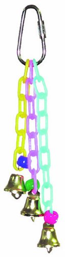 Three delicate strands of plastic chain decorated with neon pony beads and three little bells. A favorite of finch.