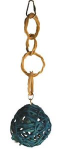 Grapevine munch ball at the end of grapevine rings interconnected. Quicklink for attaching to cage. Untoxic dye.